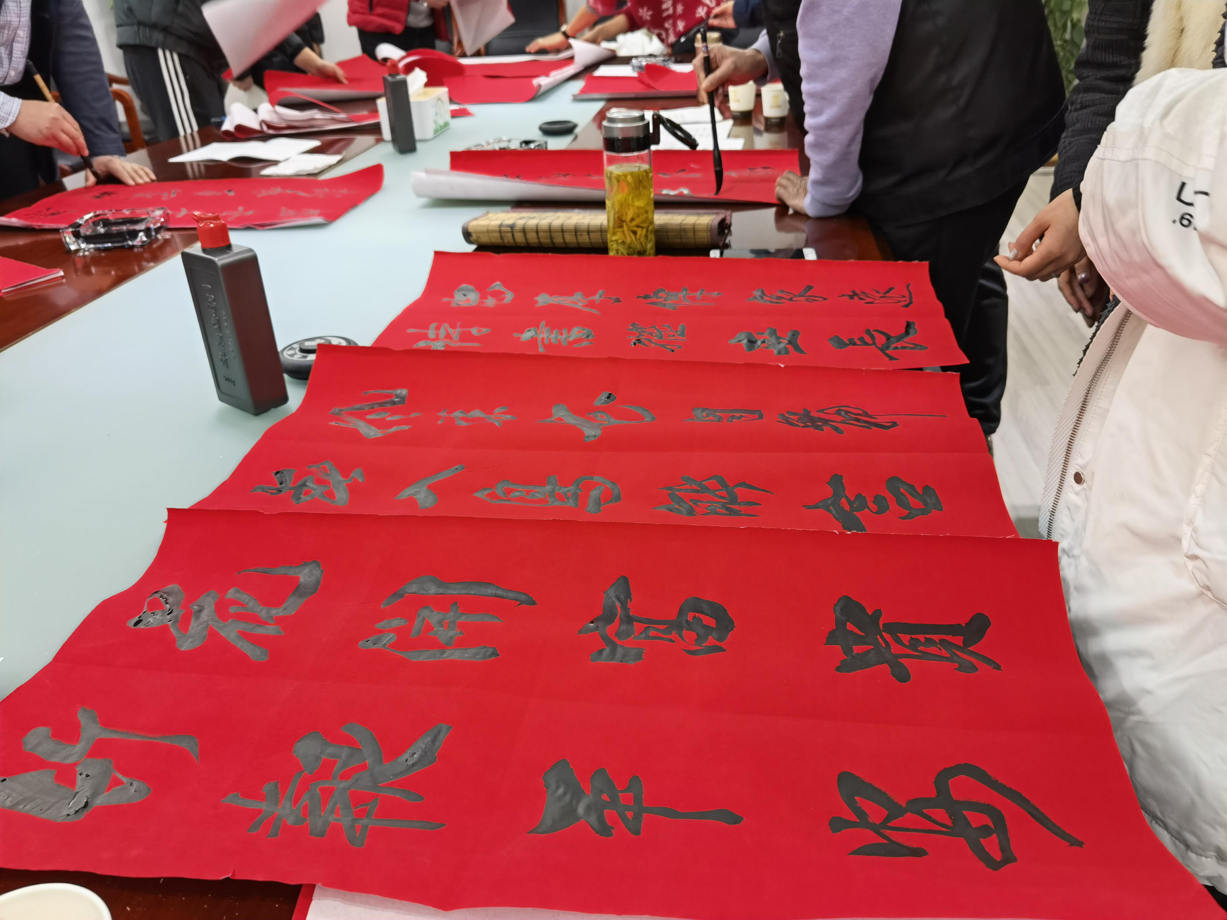 活動(dòng)現(xiàn)場(chǎng),書(shū)法老師們揮豪潑墨,妙筆生花,送出一幅幅春聯(lián),一張張“福”字。